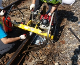 레일절단기를 이용한 레일절단.
