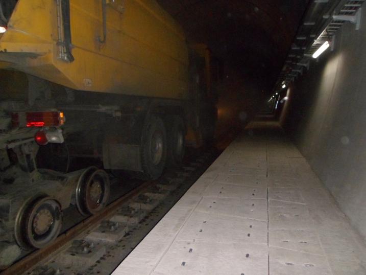 열차운행 등으로 분진이 배수로 쪽으로 모이고 굳어서 하루 작업(차단시간 2시간 기준) 500m정도 가능합니다.