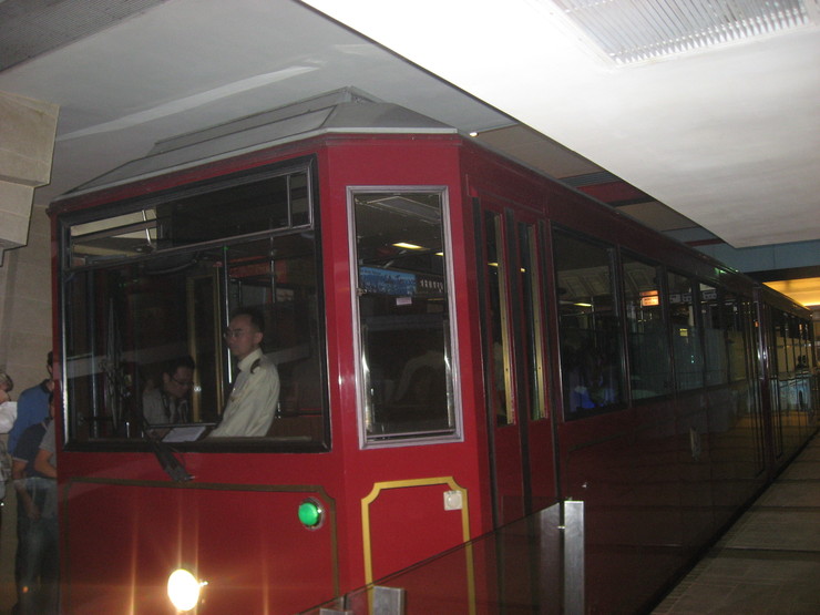 홍콩에 있는 피크 트램입니다...홍콩야경을 보기위해 사람들이 많이 찾는 빅토리아 피크로 올라가는 철도인데요... 보시는 것처럼 레일과는 별도로 케이블을 연결해 추진하고 있습니다... 경사가 무척 가파릅니다... 출처 : rack 방식의 철도 (철도기술카페) 작성자 good26b