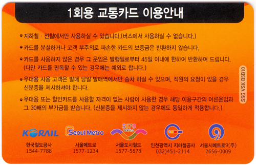 12009.5.1일부터 사용되는 1회용 교통카드 입니다.