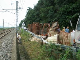 닭차가 철길옆으로 전복