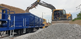 선로 자갈 정리하는 백호 사진입니다,