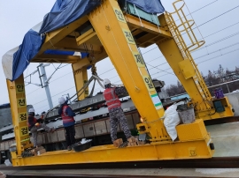 레일갱환을 위한 장대레일 하차작업