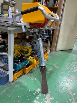 선로 자갈 다지는 핸드타이탬퍼 사진입니다.