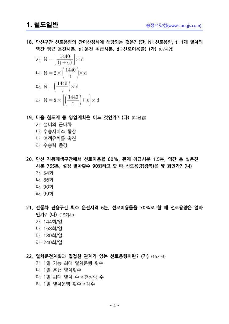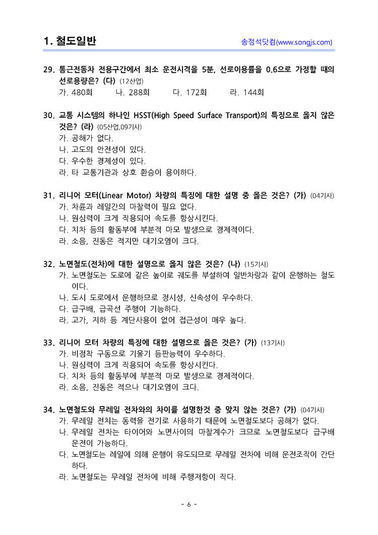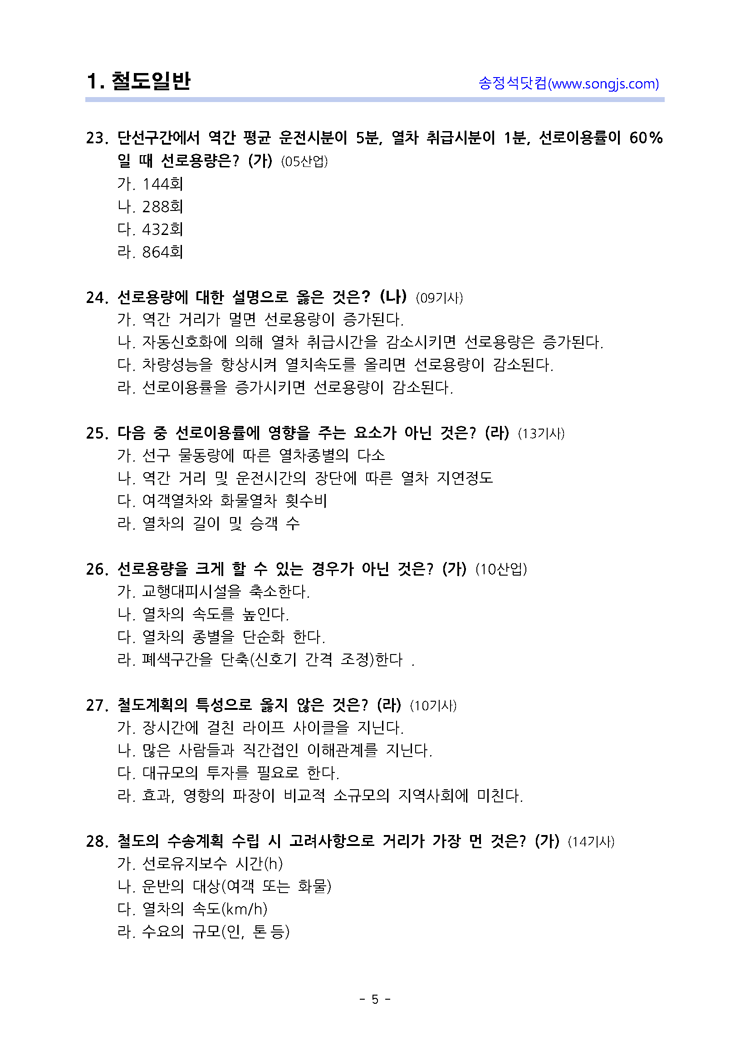 철도공학 단원별 중 철도일반에 관한 기출문제입니다.